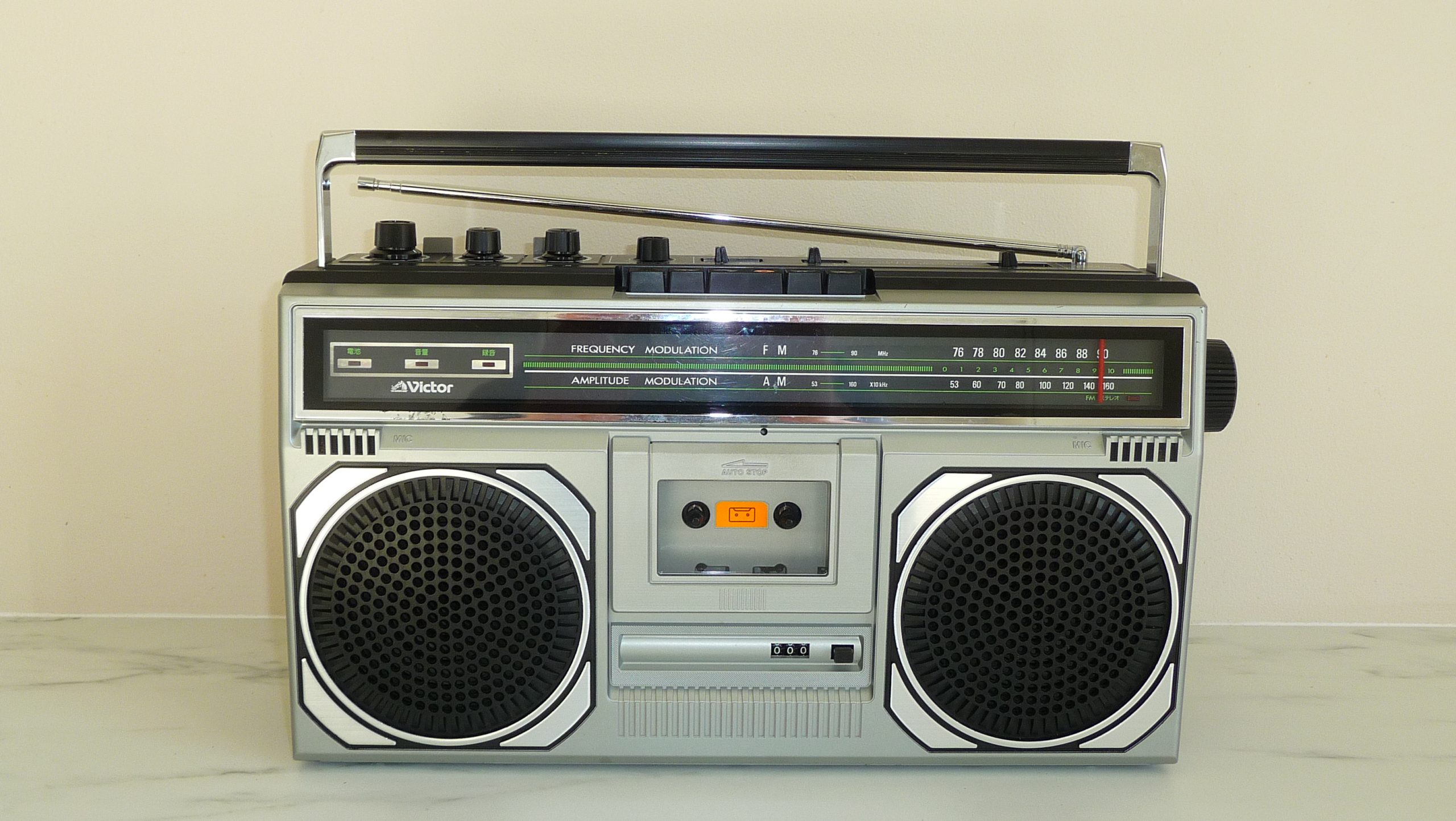 12 cm ferrite magnet speaker. High-quality IS construction. Reliable tape transport thanks to VICTOR exclusive “integrated” chassis.